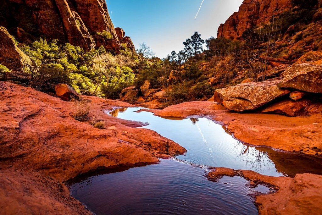 Why Hellhole? The Canyon gets its name from the towering thousand foot fiery red sandstone cliffs. The hike begins in a open wash at the bottom of Taviawk Drive and progressively narrows as you hike deeper amid the the cliffs where you find relief from the heat during the hotter months.